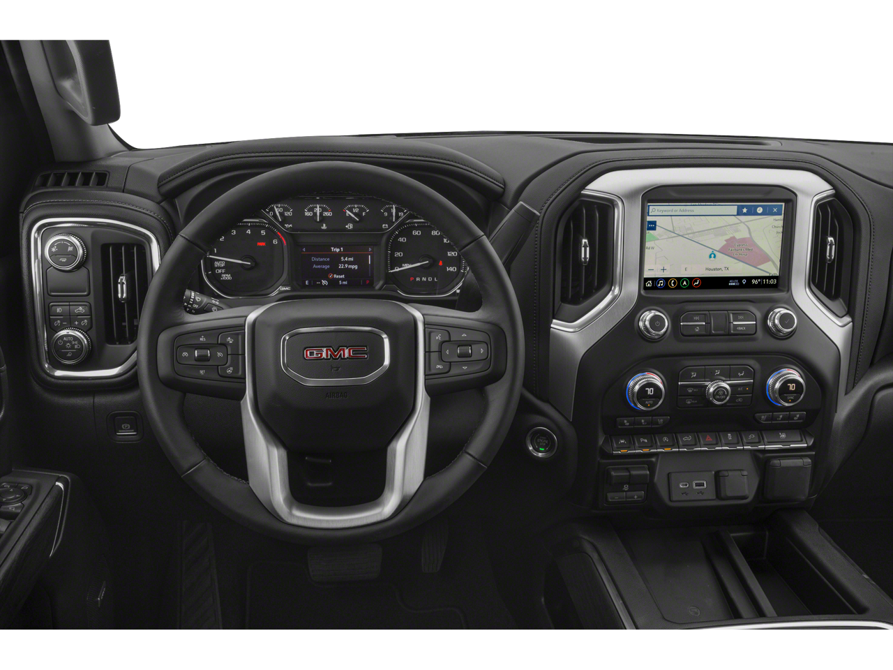 You'll never again be lost in a crowded city or a country region with the navigation system on the vehicle. This GMC Sierra comes equipped with Android Auto for seamless smartphone integration on the road. The vehicle keeps you comfortable with Auto Climate. This GMC Sierra has auto-adjust speed for safe following. This 1/2 ton pickup's Cross-Traffic Alert: Safeguarding you from unexpected traffic when reversing. This vehicle's Lane Departure Warning keeps you safe by alerting you when you drift from your lane. This vehicle features a hands-free Bluetooth® phone system. This 1/2 ton pickup stays safely in its lane with Lane Keep Assist. The rear parking assist technology on this 1/2 ton pickup will put you at ease when reversing. The system alerts you as you get closer to an obstruction. The leather seats in this unit are a must for buyers looking for comfort, durability, and style. This unit offers Apple CarPlay for seamless connectivity.